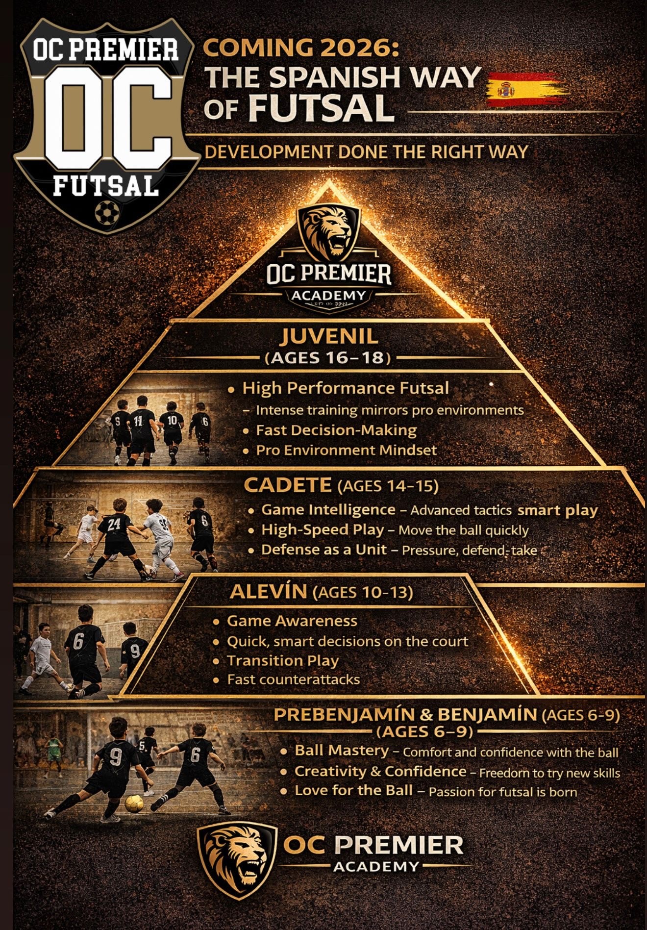 Our OC Premier Academy Futsal competitive teams are formed by SELECTION ONLY and rostered with some of the very best Futsal/Soccer players in country!